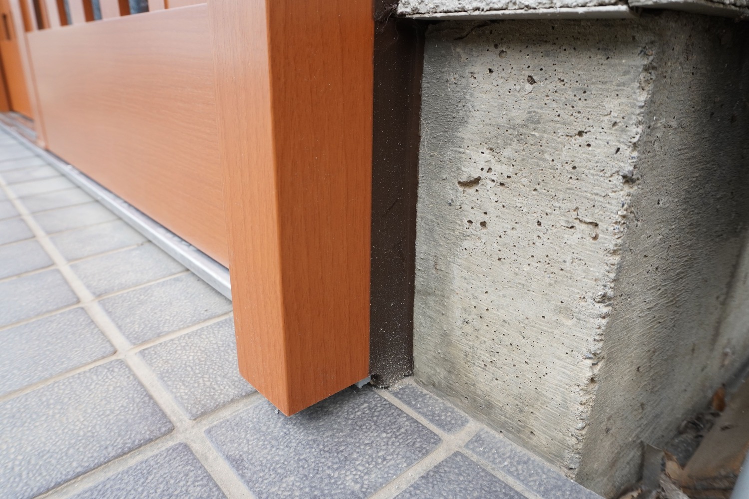 あと、もちろん玄関本体にも網戸がついているので、こちらでの通風も可能です。ちなみに最後の写真は新しく取り付けた玄関縦枠と外壁との取り合い部分ですが、コーキング処理をしています。これだけ太いと難しいのですが、このようなコーキングができるところも弊社のちょっとした自慢です。