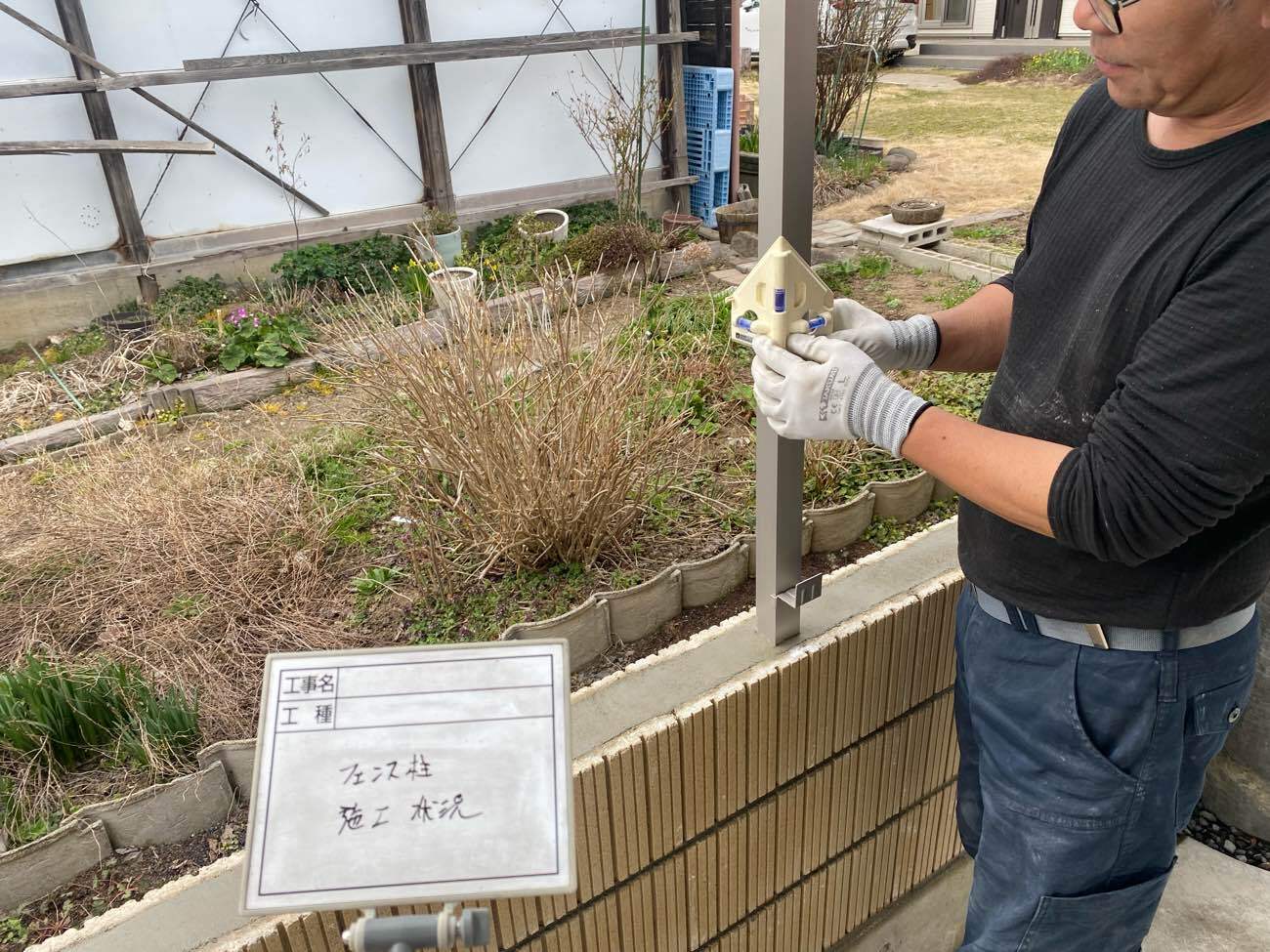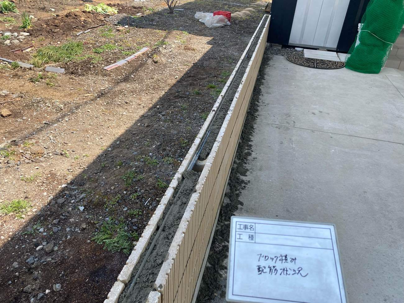 強度の高いブロックを3段積むことで、フェンスの設置高さを確保し、建物と外構のバランスを取りました。プラチナステンのフェンスは、同じYKKAPのカーポート(プラチナステン)の色味と統一感を持たせています。