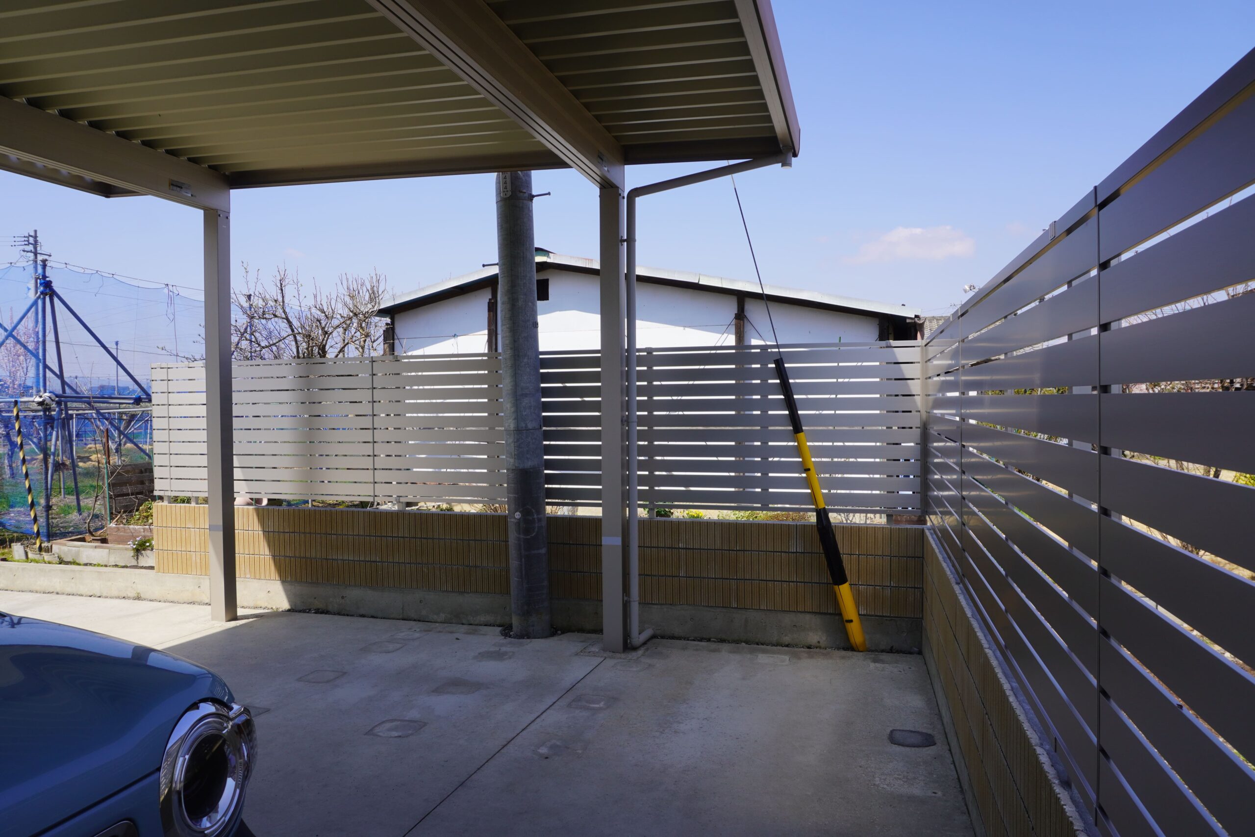 こちらのお客様はお住まいを新築され、何年か経過しています。カーポートはその時に建てられていたのですが、カーポート裏を仕切り、適度に視線を遮るスペースをつくりたいという御意向でした。