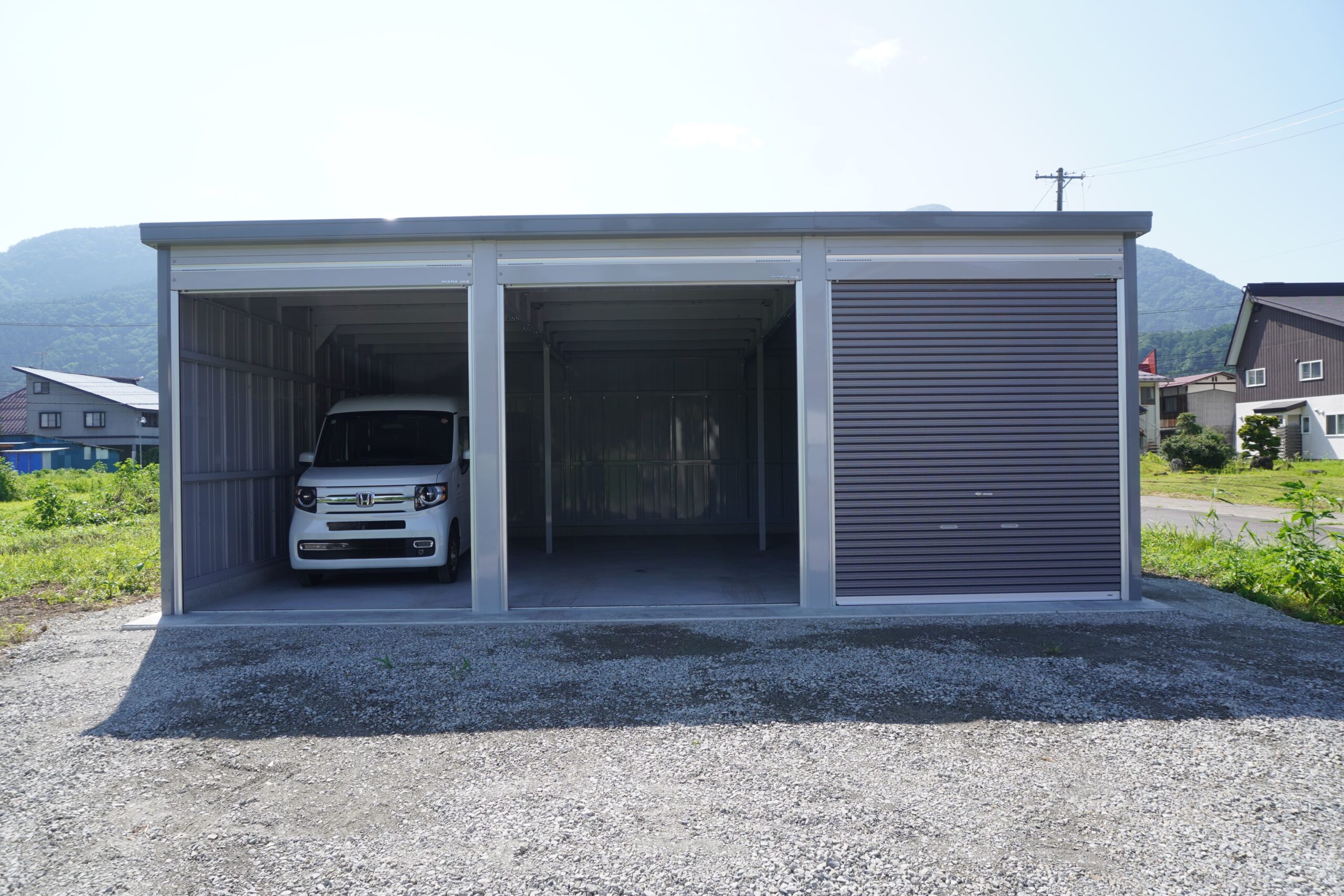 こちらに組み立てたガレージはイナバの「GRN-2662JL(ジャンボ)」の3連棟タイプです。このタイプのガレージはサイズのバリエーションが豊富なことに加え、連棟することができオプションを使ったカスタマイズも可能です。ですので、敷地の広さ・形状・使用用途に合わせて、自分仕様のガレージを作り上げることが出来るのが良いところです。