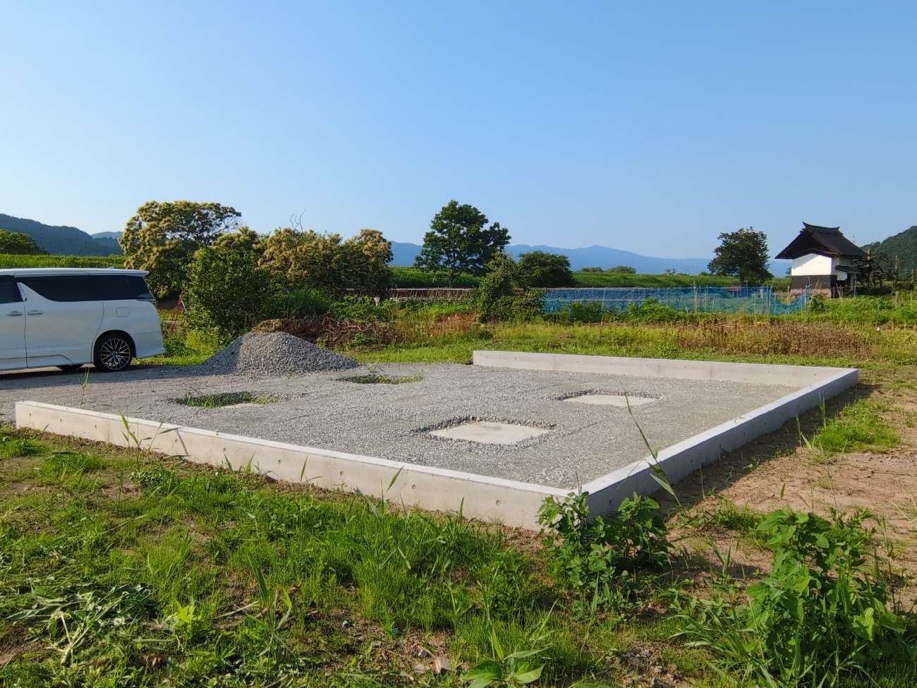 このように広い敷地にガレージを施工します。自然豊かな解放感のある場所です。