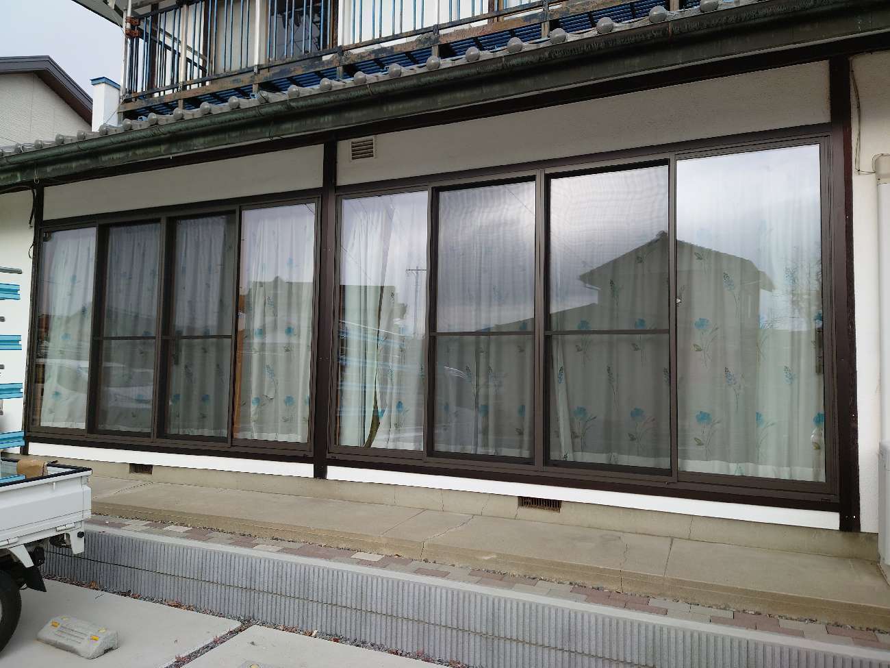 こちらも当時主流の欄間付の4枚引き違い戸が2連並びで設置され、非常に大きな開口部と言えます。こちらもアルミサッシに単板ガラスの窓でしたから、暑さ/寒さがダイレクトに伝わる窓でした。